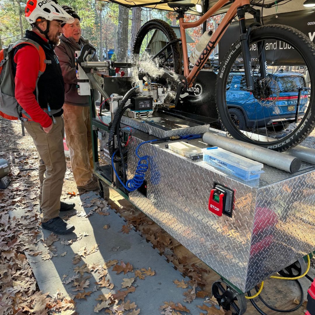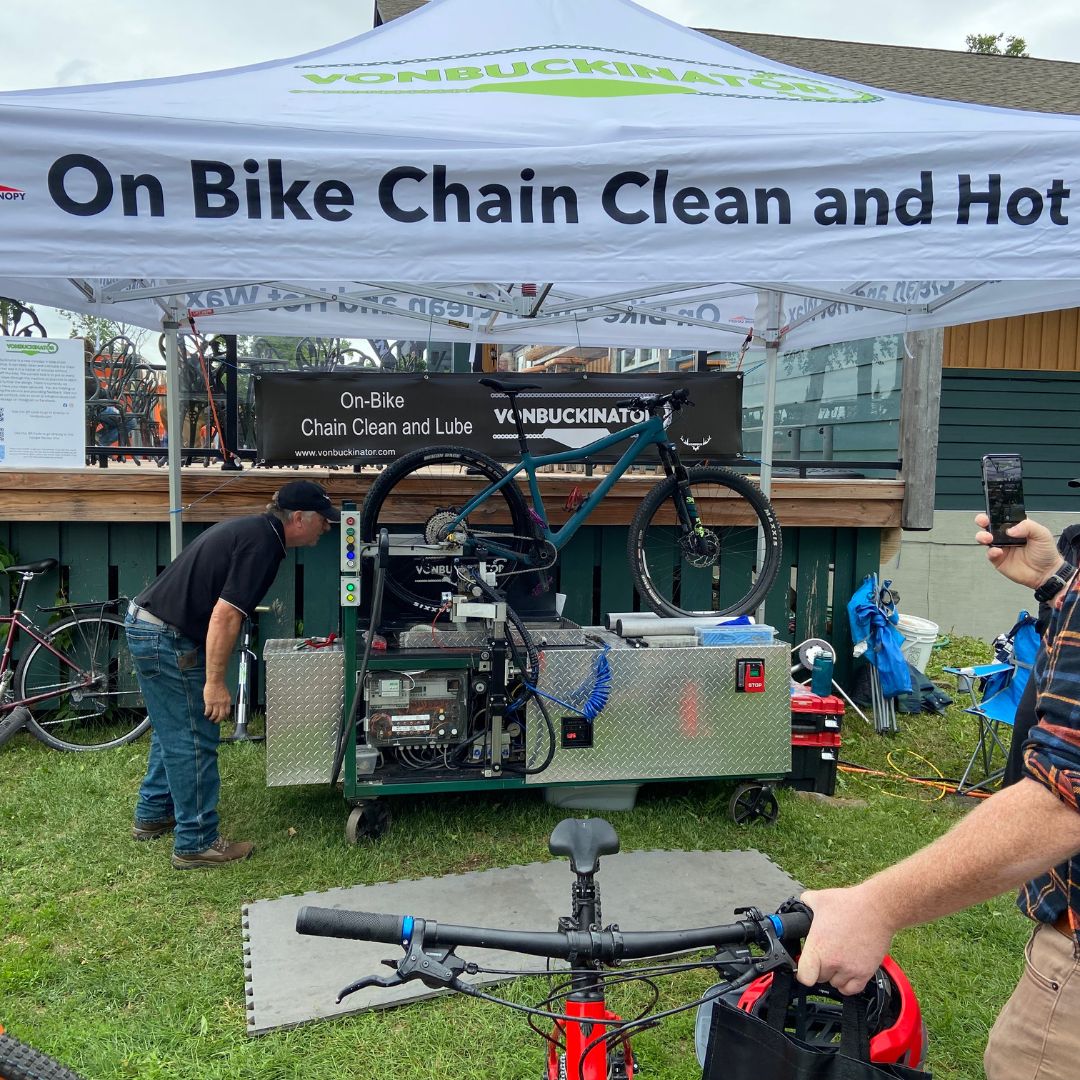 The VonBuckinator™ is the first automatic bike chain cleaner and waxer. Cyclists of all varieties simply place their bike in the machine, and in as little as three minutes, receive a bike that’s ready for the toughest terrain and hundreds of miles. A series of strategically placed nozzles blast grit from hard-to-reach areas of the chain while also cleaning the exterior. After your chain is squeaky clean, it’s dried with compressed air and treated with our proprietary lubricant. The solution used to clean your chain is captured, filtered, and recycled, reducing the amount of waste and providing a greener outcome for cyclists.